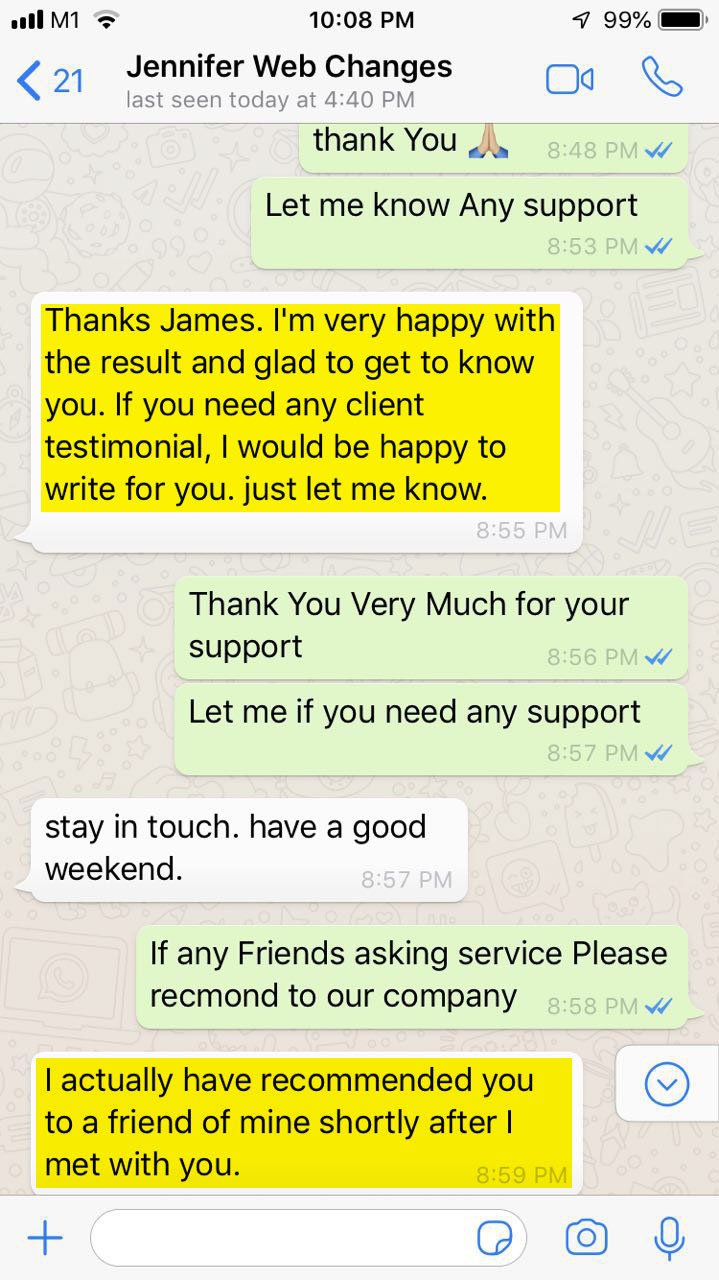 CLIENT TESTMONIALS COLLECTING FROM FEB 2019
